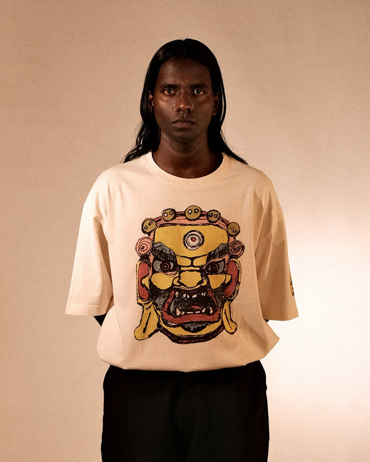 100% organic cotton, 180 GSM. Stitched with 100% cotton threads. Hand-dyed, hand-printed, and hand-painted at our studio. This is not your average oversized tee—it’s a fit we’ve developed and refined at BAKR.