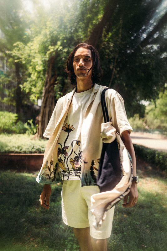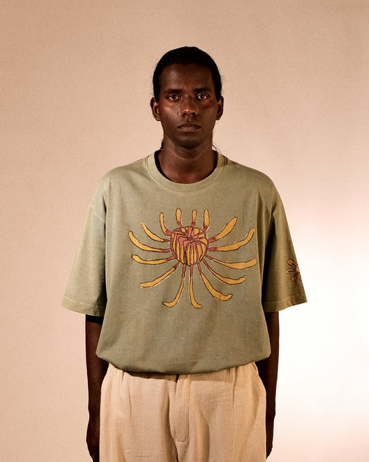 Made in 100% organic cotton, 270 GSM. Stitched with 100% cotton threads. Hand-dyed, hand-printed, and hand-painted at our studio. Designed with a relaxed, easy fit—built to layer, built to last.