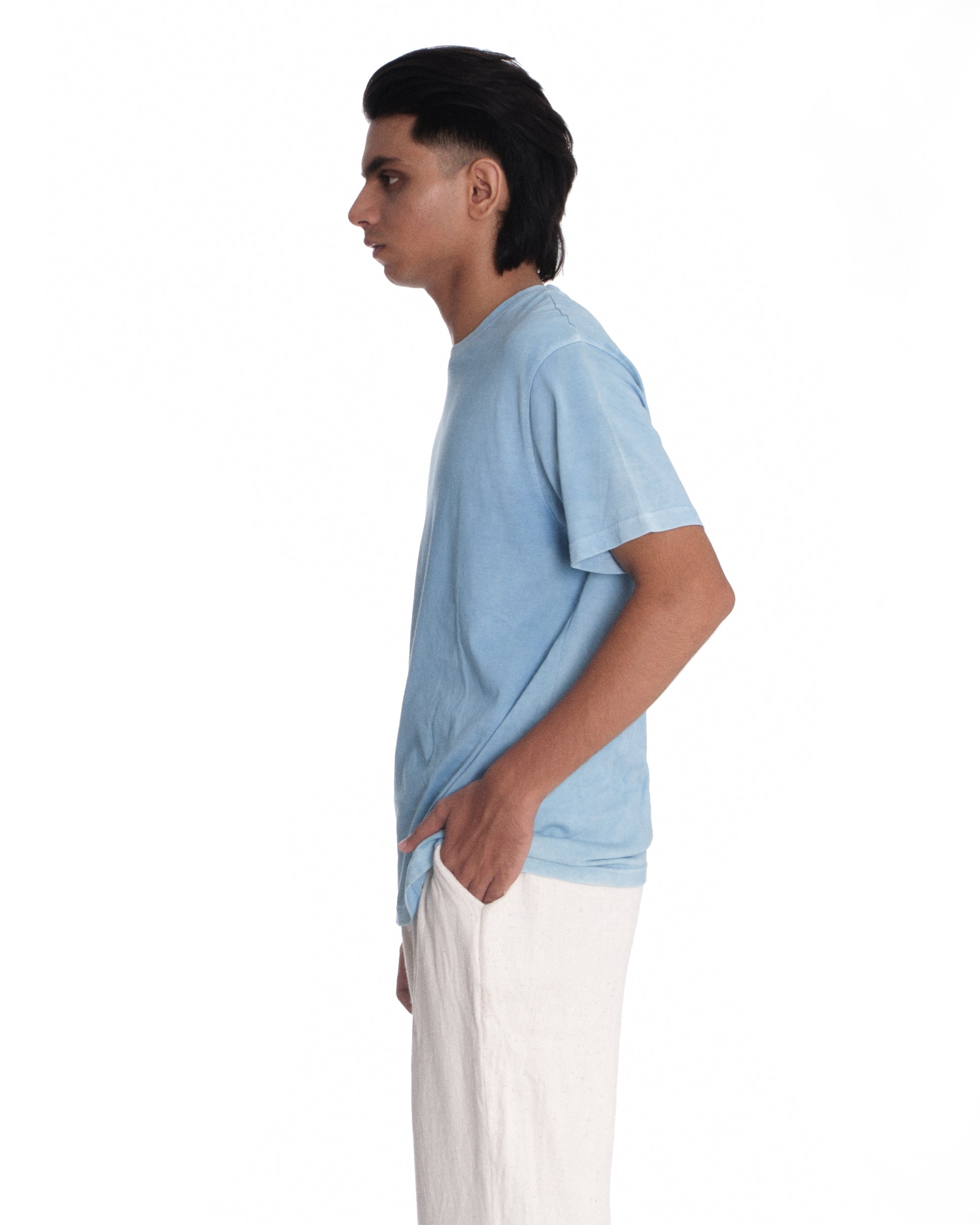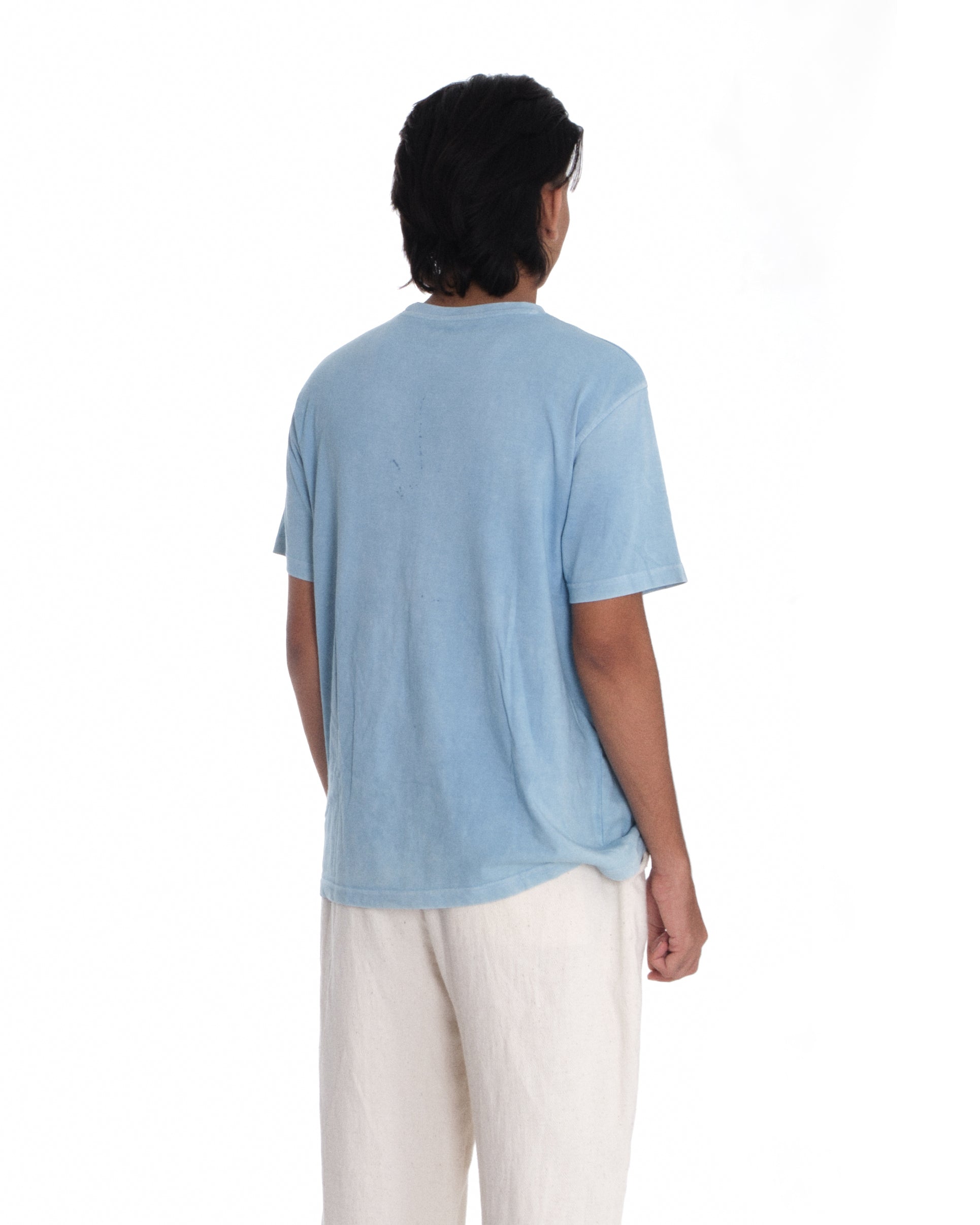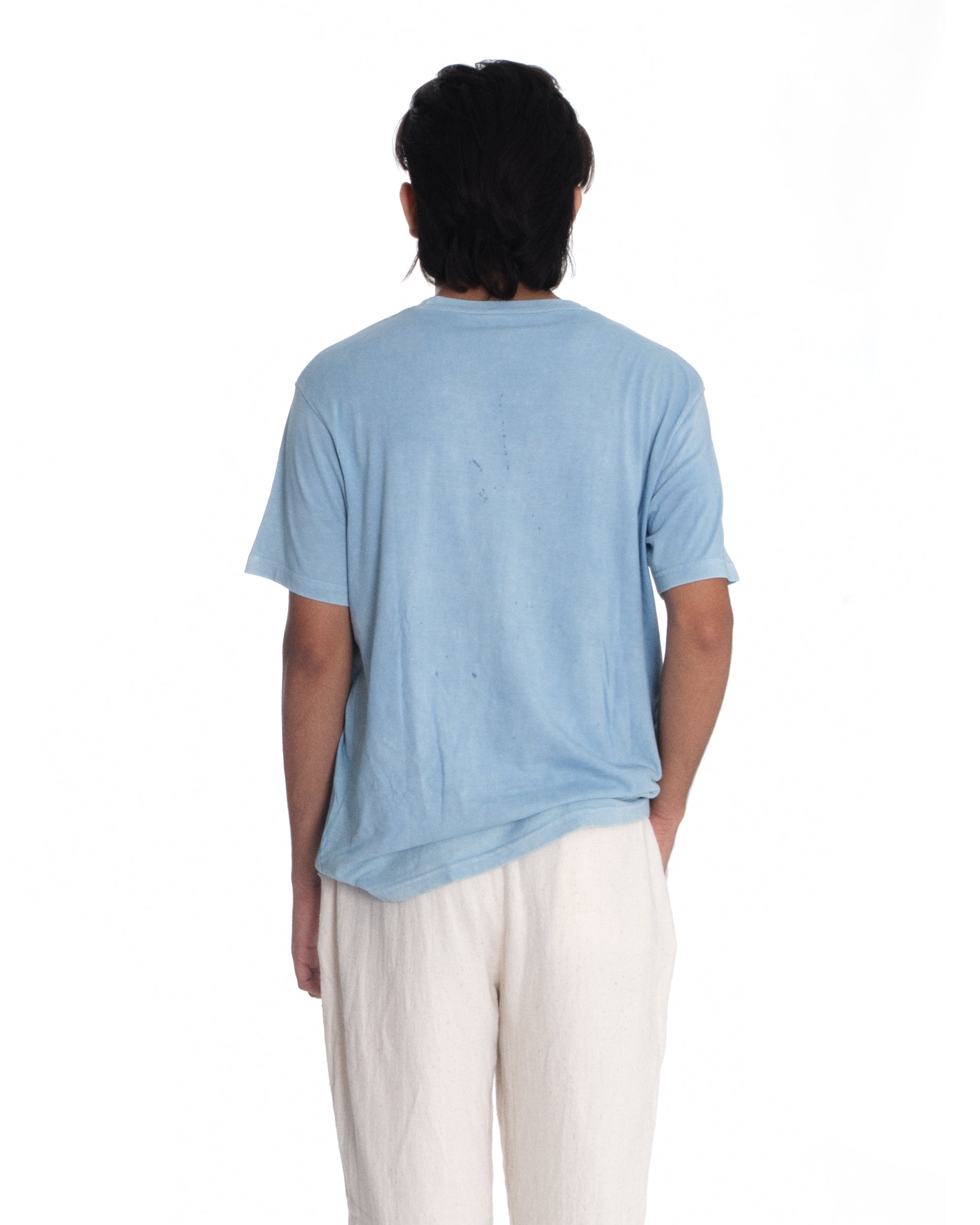 Introducing Bakr’s “Basic” unisex t-shirt in “Ice Indigo.” Each shirt undergoes a precise hand-dipping and oxidation process, repeated twice in our 100% organic indigo honey vat. This method results in a delicate, light indigo shade.