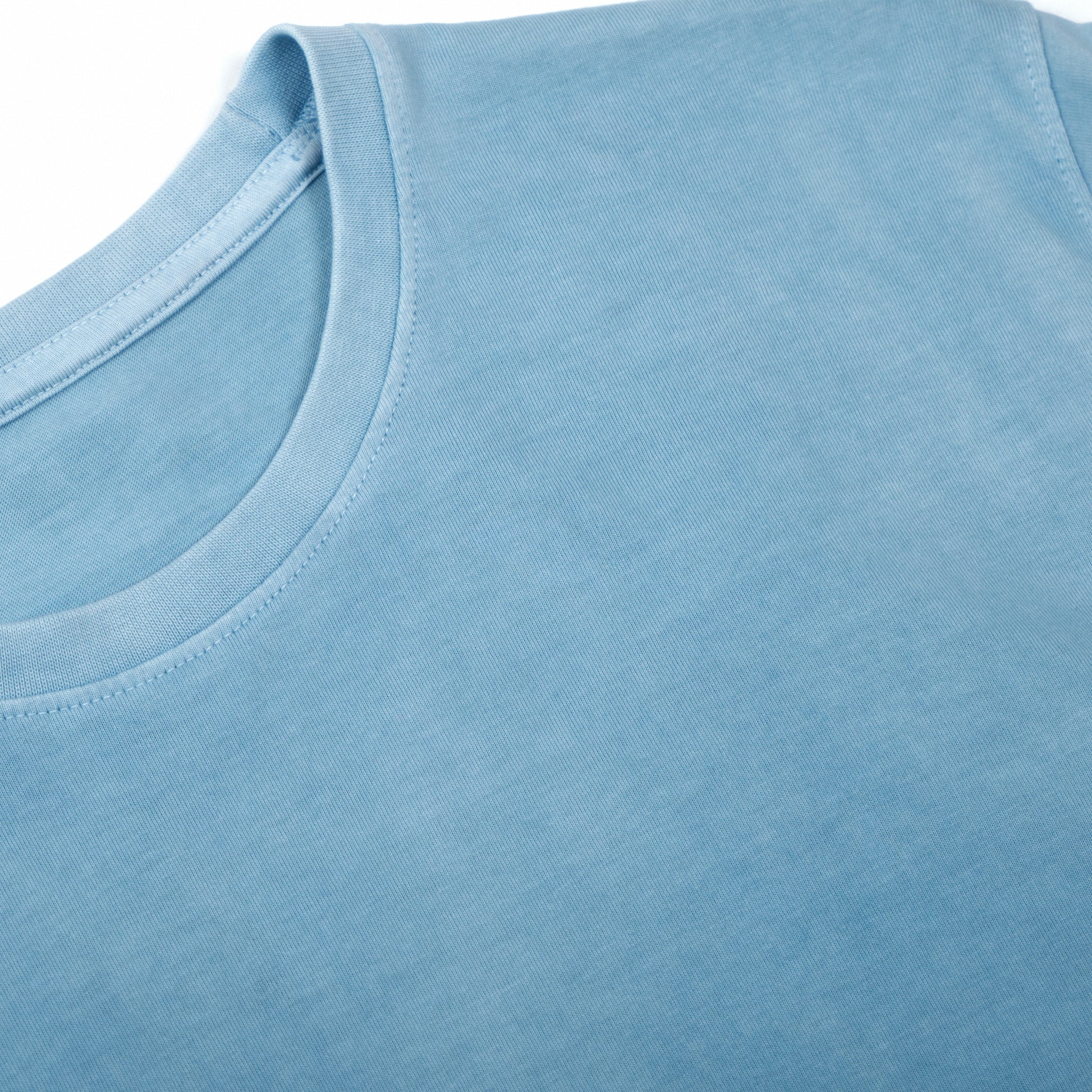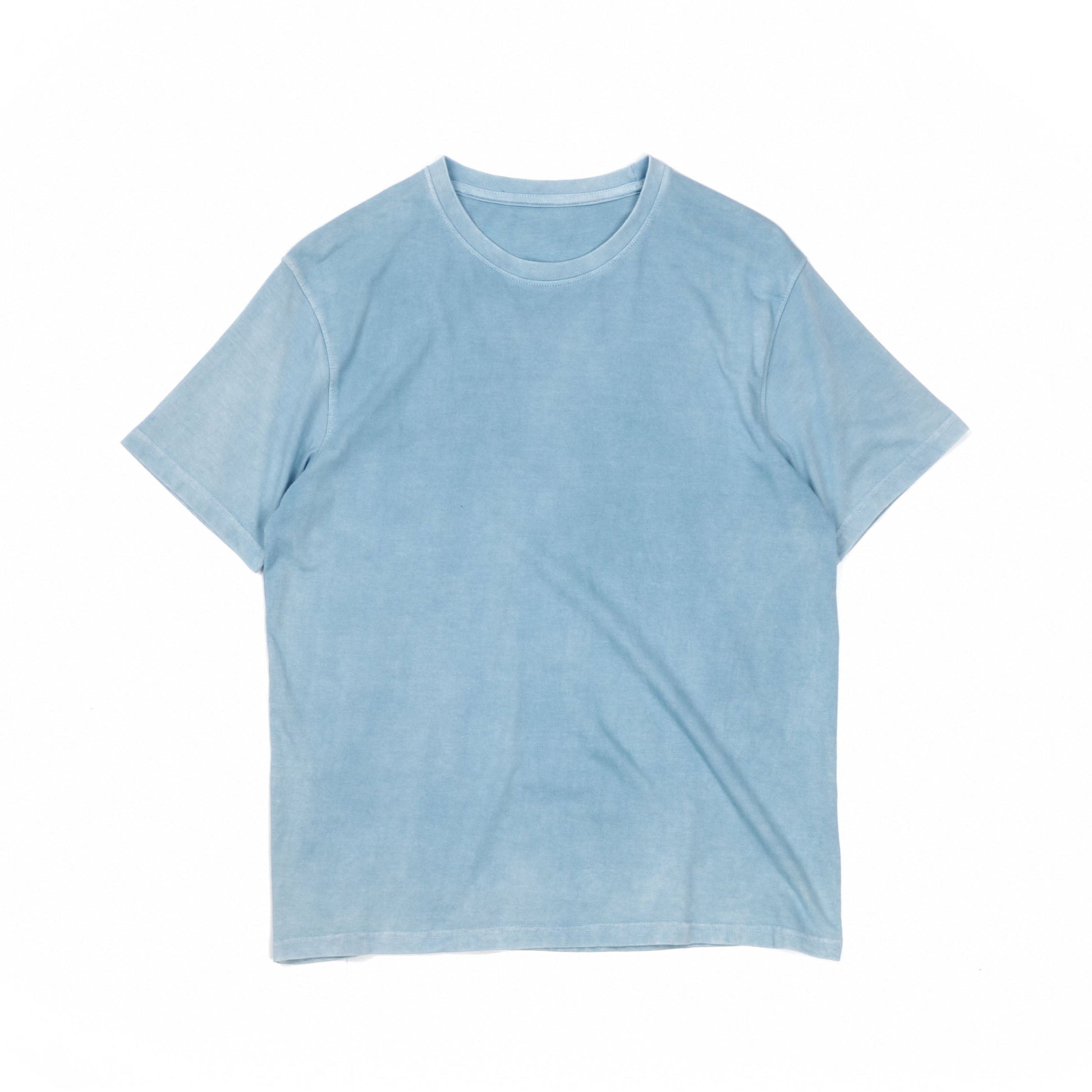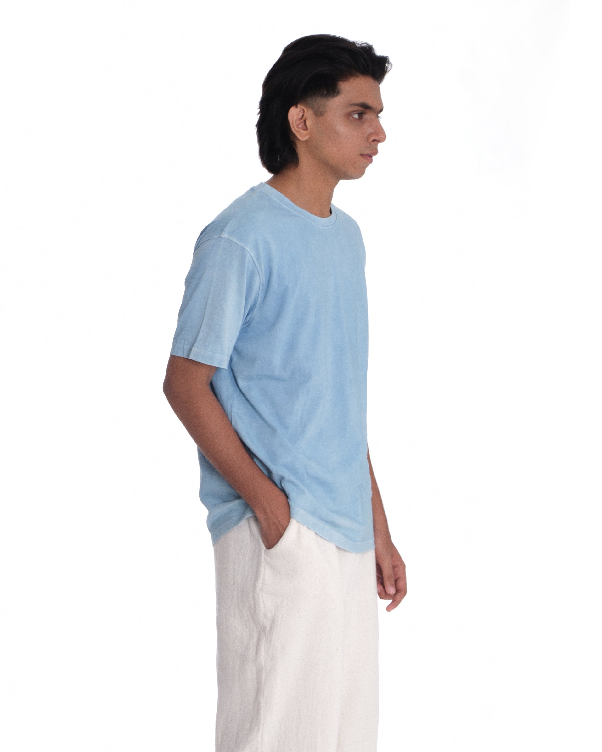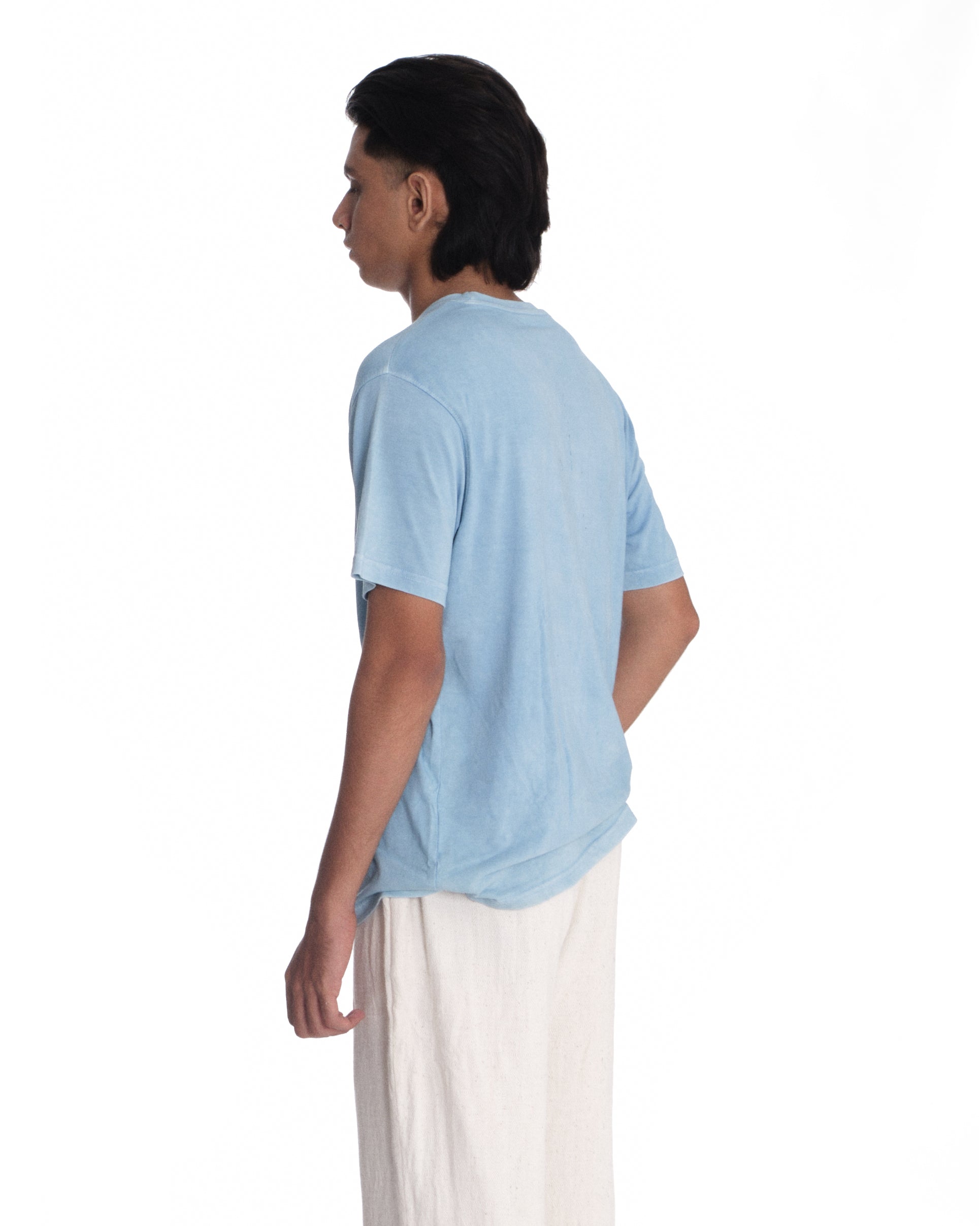 Introducing Bakr’s “Basic” unisex t-shirt in “Ice Indigo.” Each shirt undergoes a precise hand-dipping and oxidation process, repeated twice in our 100% organic indigo honey vat. This method results in a delicate, light indigo shade.