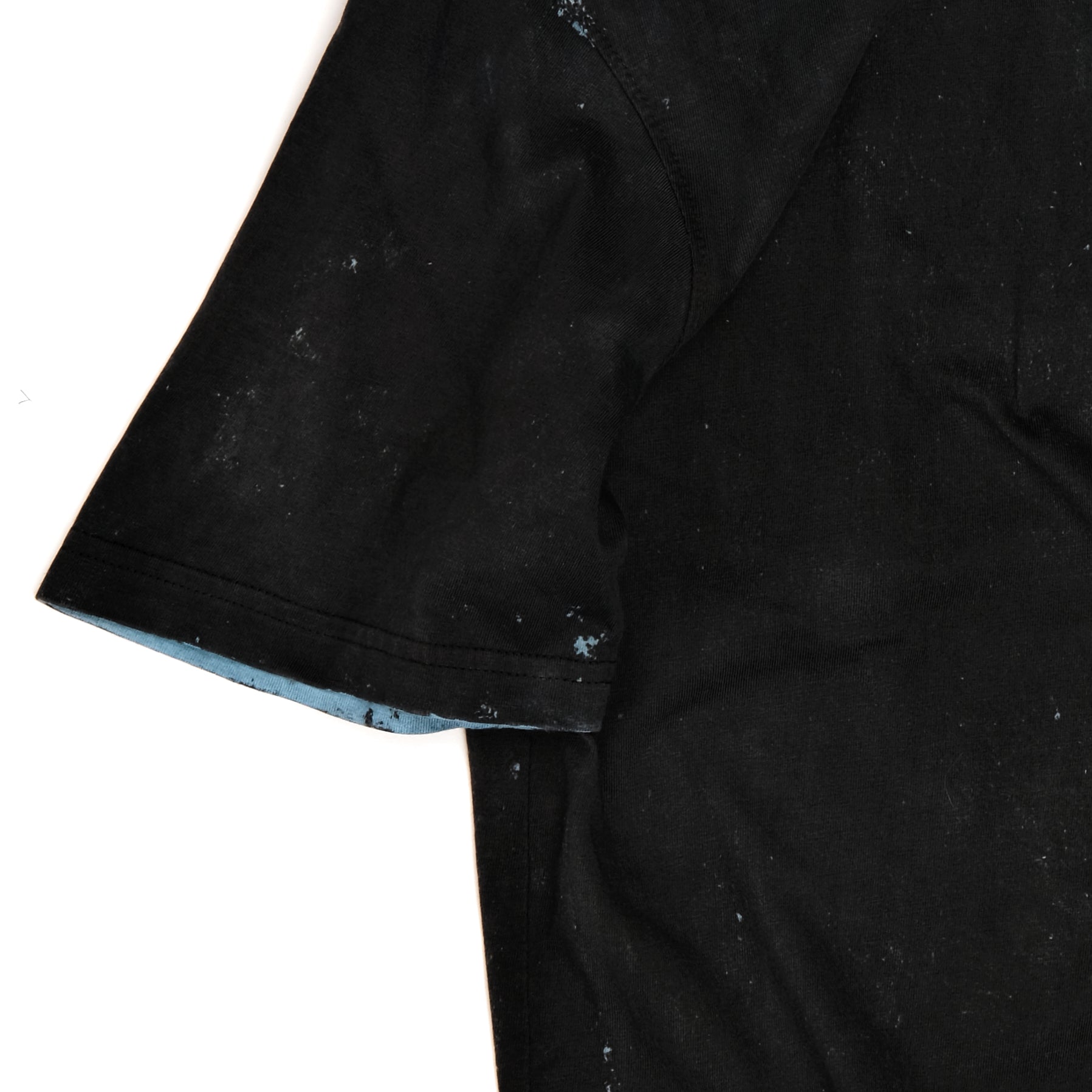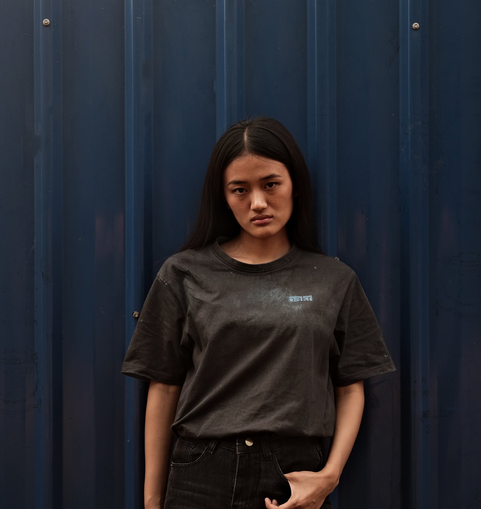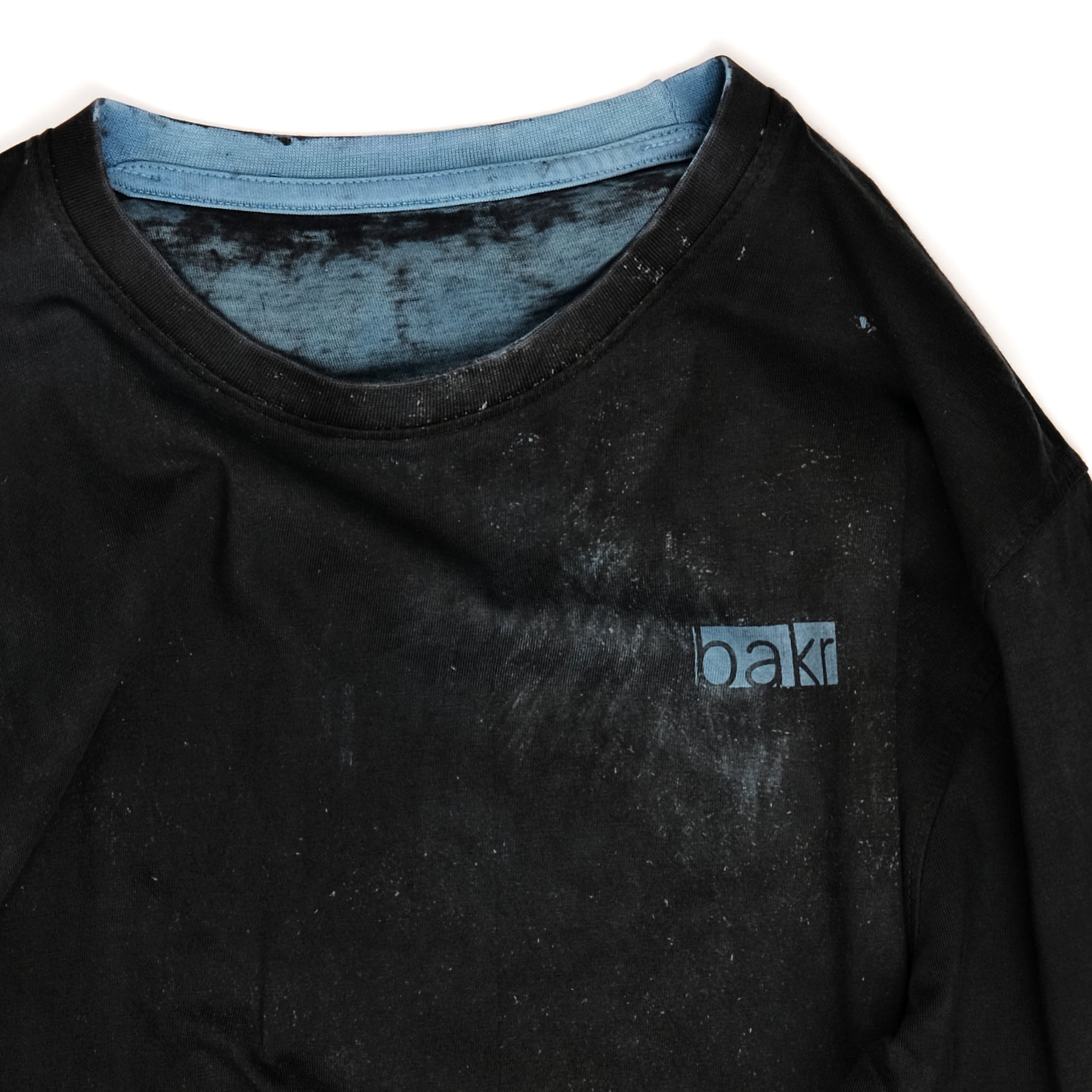 Bakr Basic in "Neon Indigo" is resist printed by hand, hand-painted in colours extracted through the fermentation of iron rust and molasses, and hand-dyed in our studio with our organic honey indigo vat.