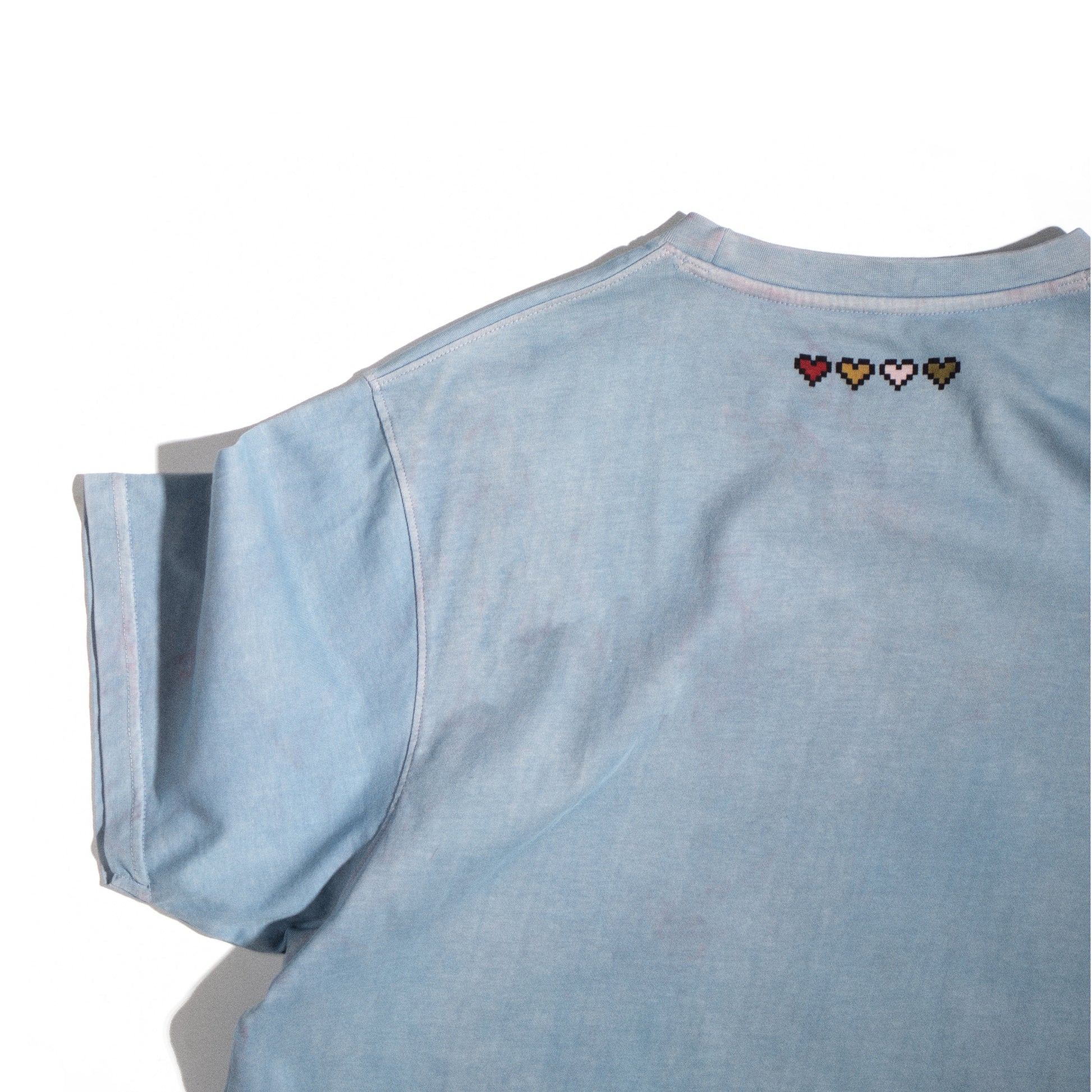 BAKR’s unisex tee “Brick Skull” is hand-printed in iron rust black, prepared through a 45-day fermentation of iron rust and molasses. It is then dyed using an ancient, lost madder dyeing technique we’ve revived at the workshop. The piece is hand-painted using myrobalan yellow, rice paste resist-printed by hand, and over-dyed in organic honey indigo.