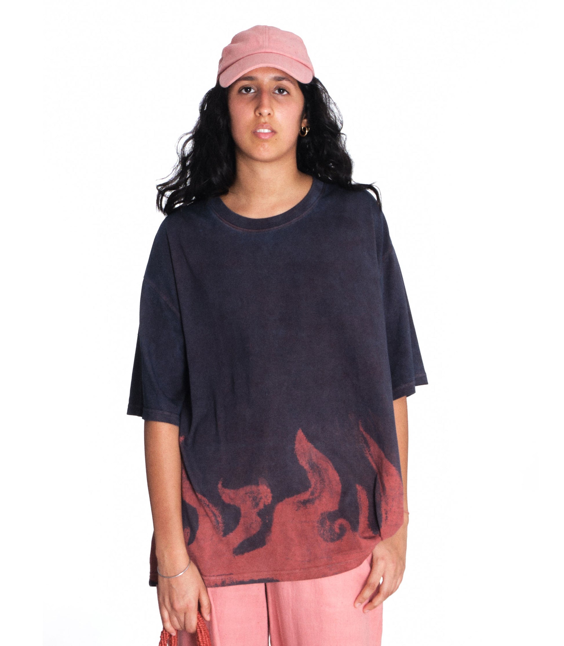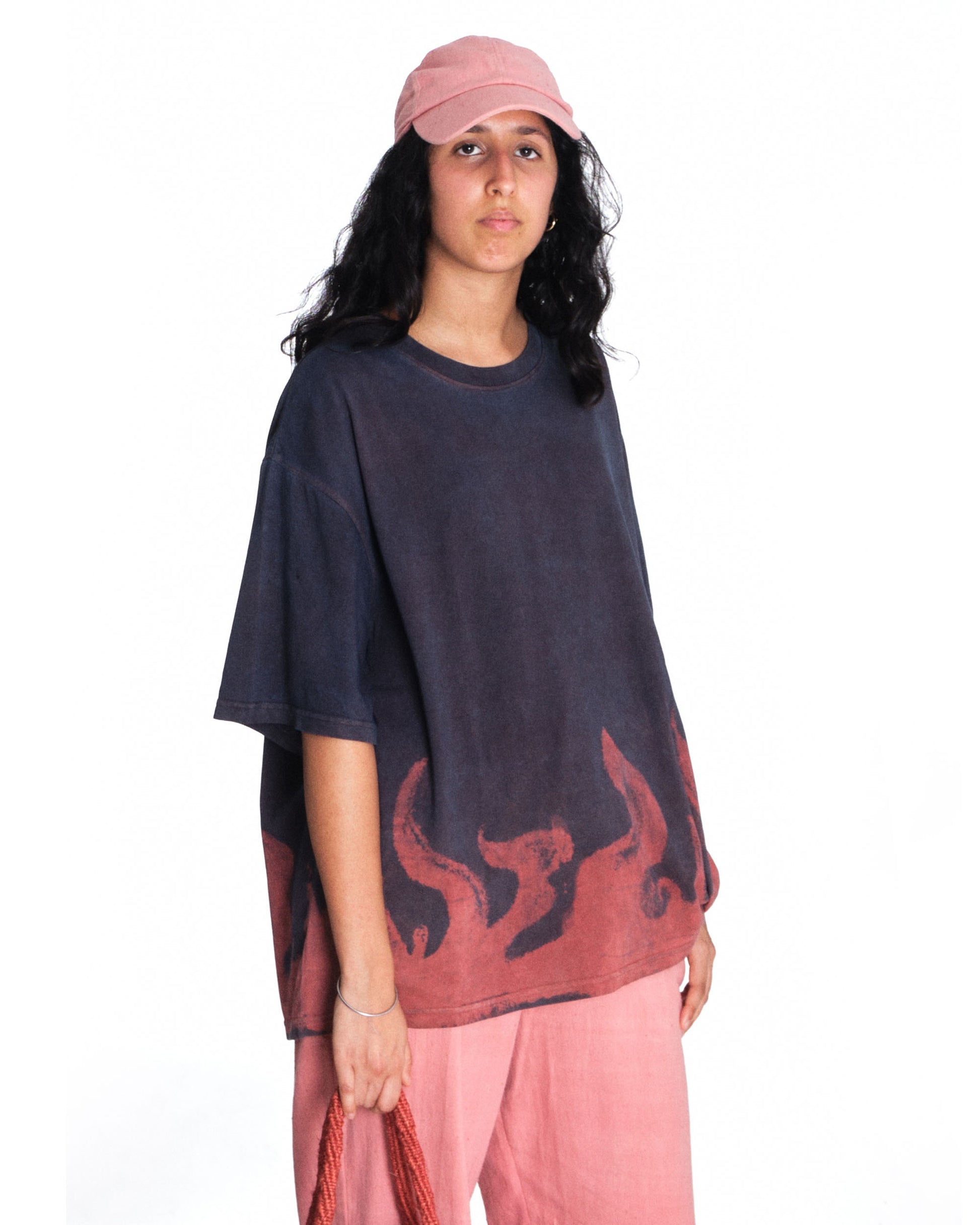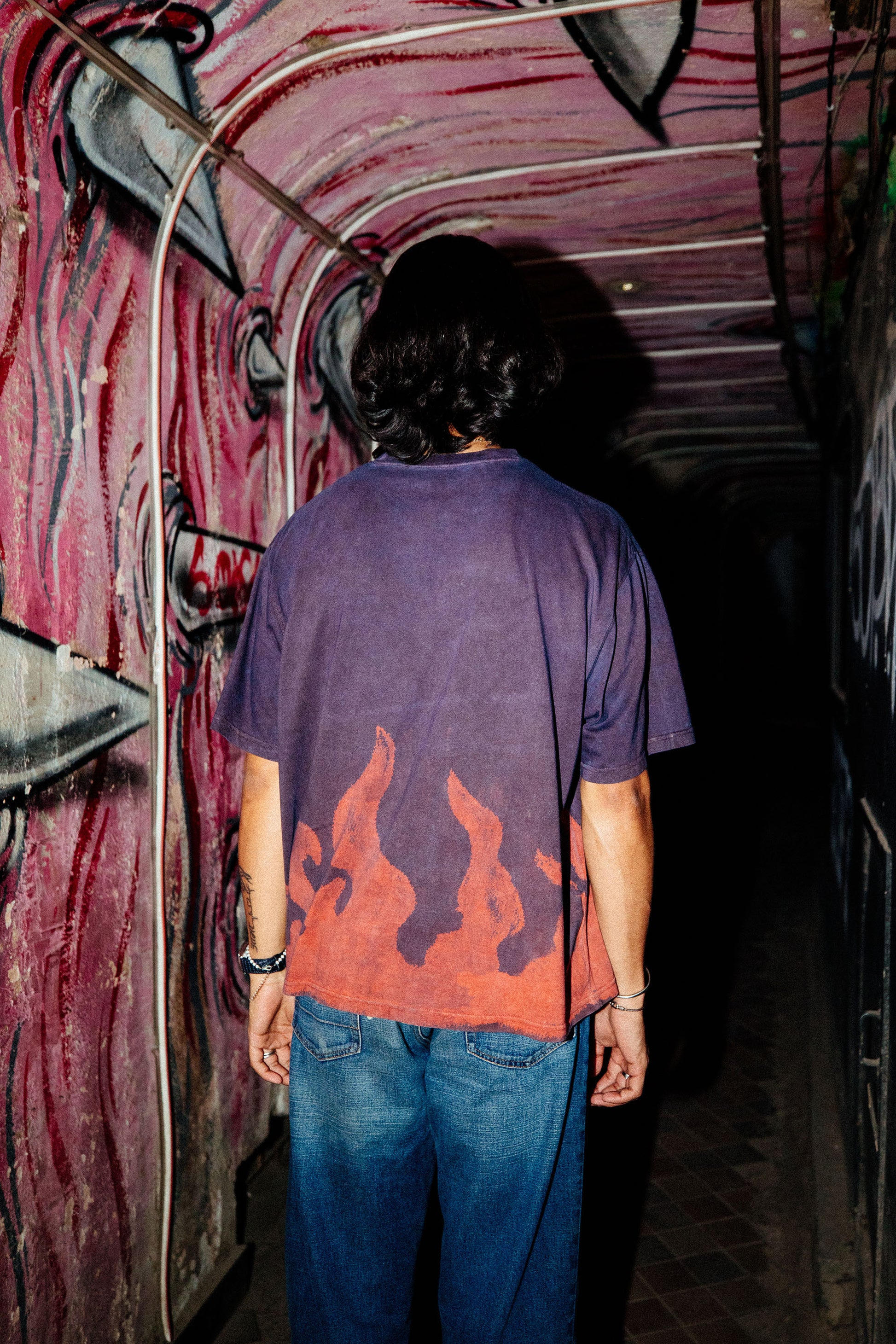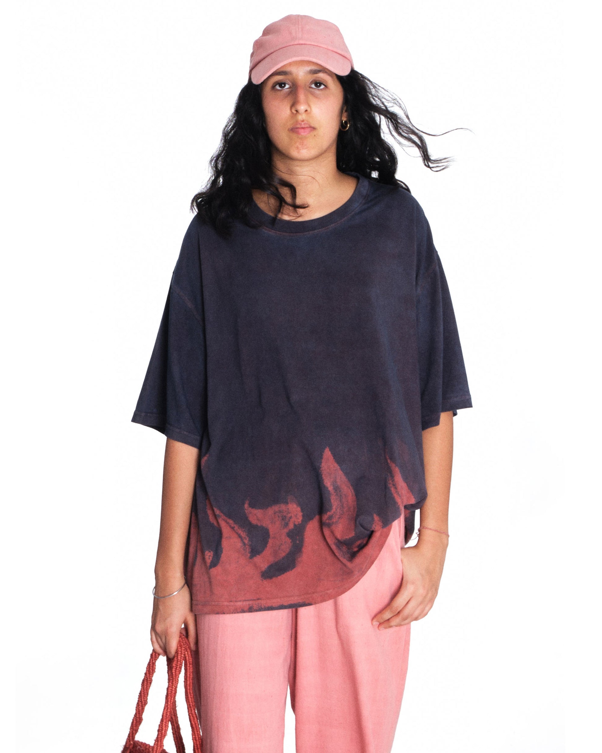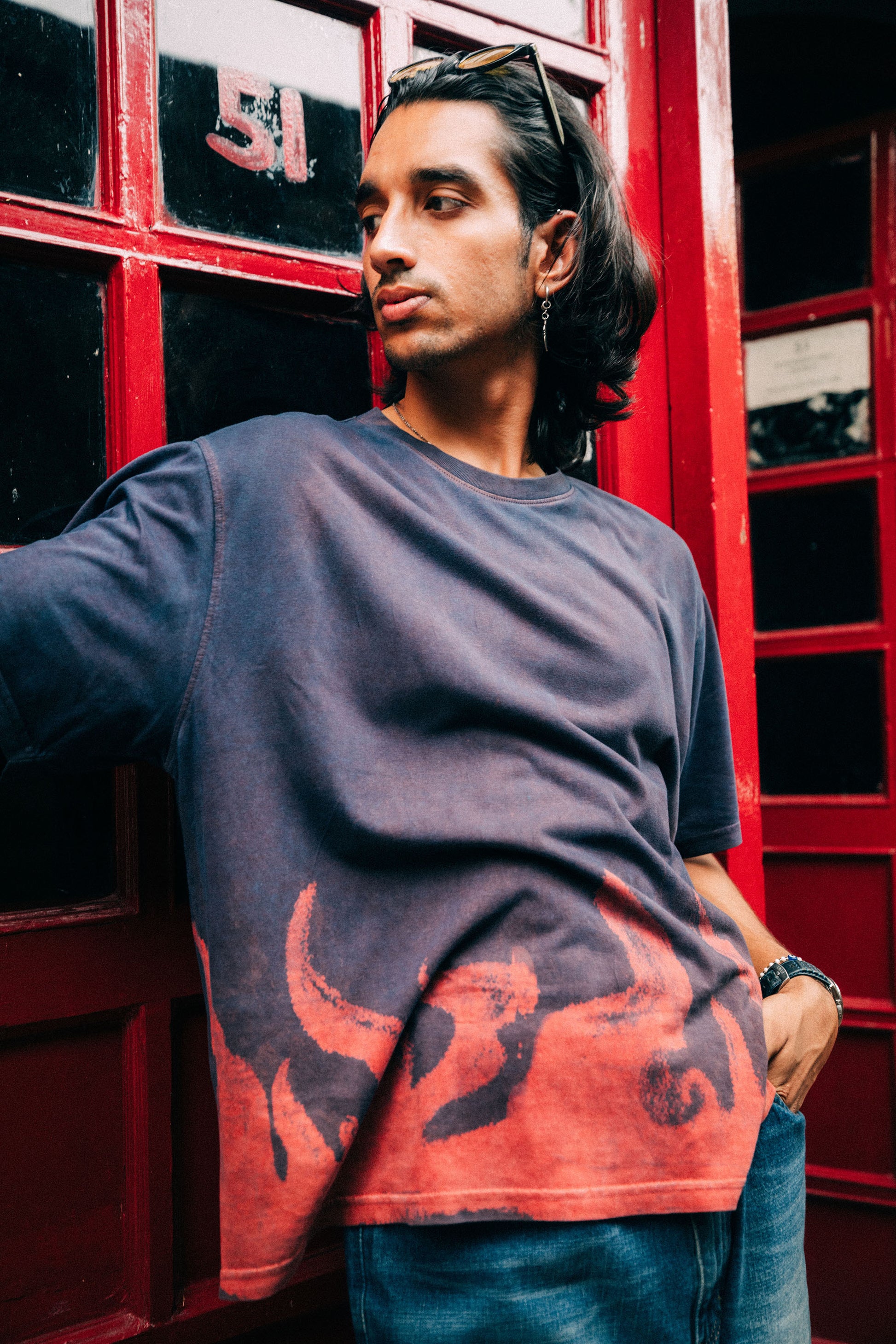Introducing Bakr’s “Forest Flame” oversized unisex t-shirt in “Purple Red.” Crafted meticulously with 100% natural madder red dye, rice paste resist printing, and organic honey indigo overdye, each piece embodies a rich, vibrant hue. Rooted in a 250-year-old tradition, this process takes 25 days, ensuring meticulous care and quality.