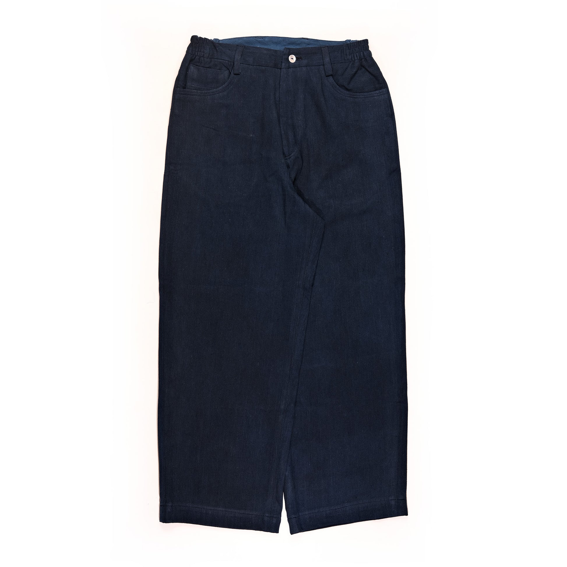 Bakr’s handspun, handwoven denim is a comfort-fit piece—easygoing yet built to last, with semi-elastics on both sides of the waist. Designed to age beautifully, like denim was always meant to.