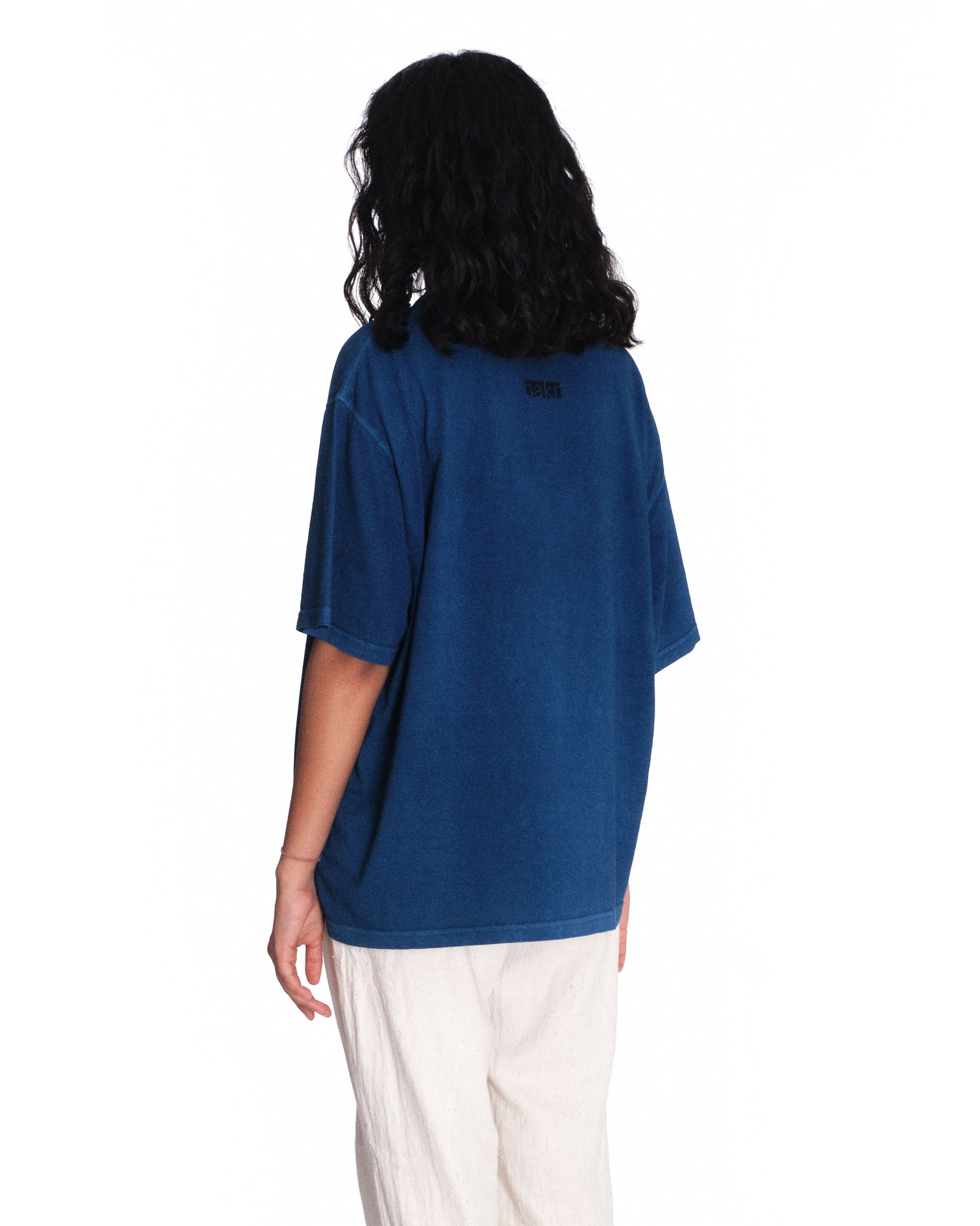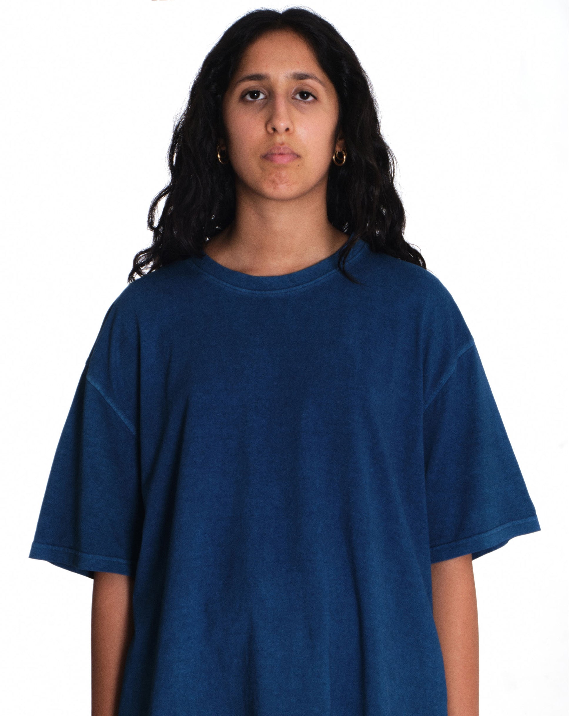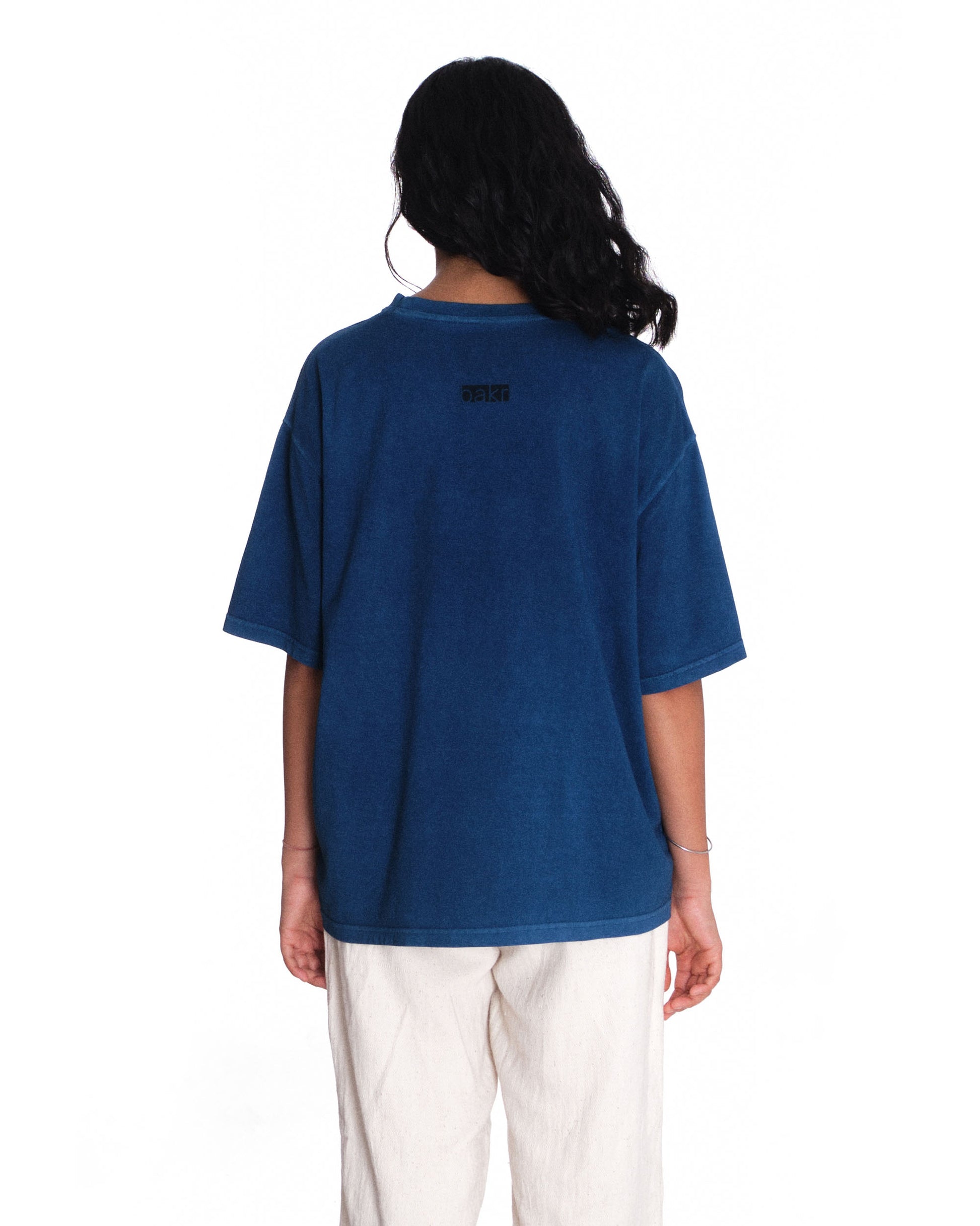 Introducing Bakr’s “Nightfall” oversized unisex t-shirt in “8Dip indigo.” Each shirt undergoes a meticulous process, being hand-dipped and oxidized twelve times in our 100% organic indigo honey vat. This results in a rich, deep hue that’s as luxurious as it is thoughtfully crafted.
