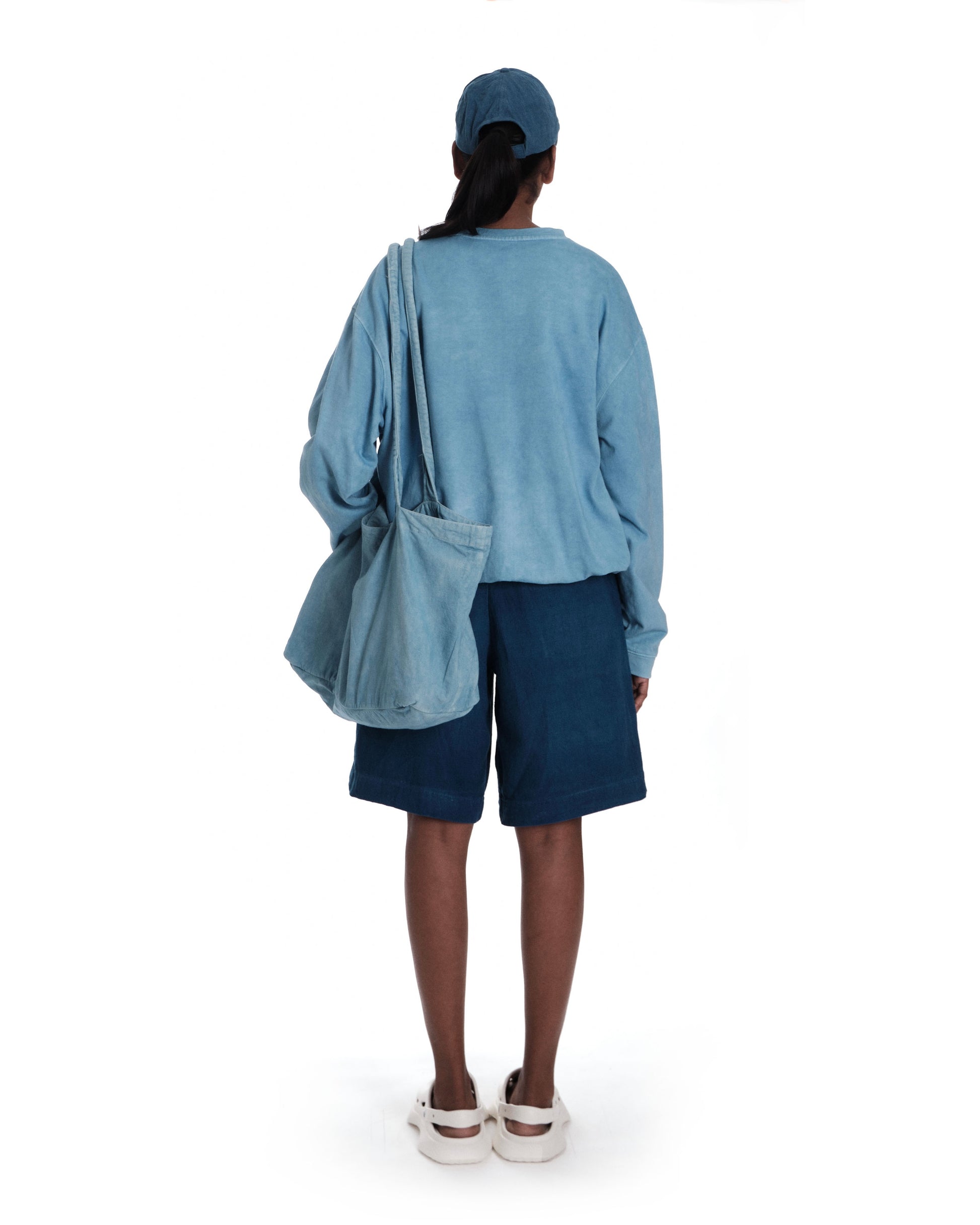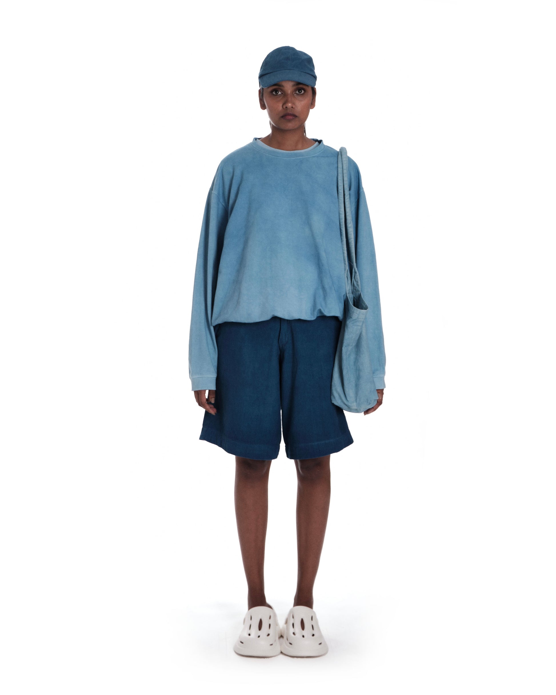 Bakr’s oversized plain unisex crewneck in the shade “indigo ice” is