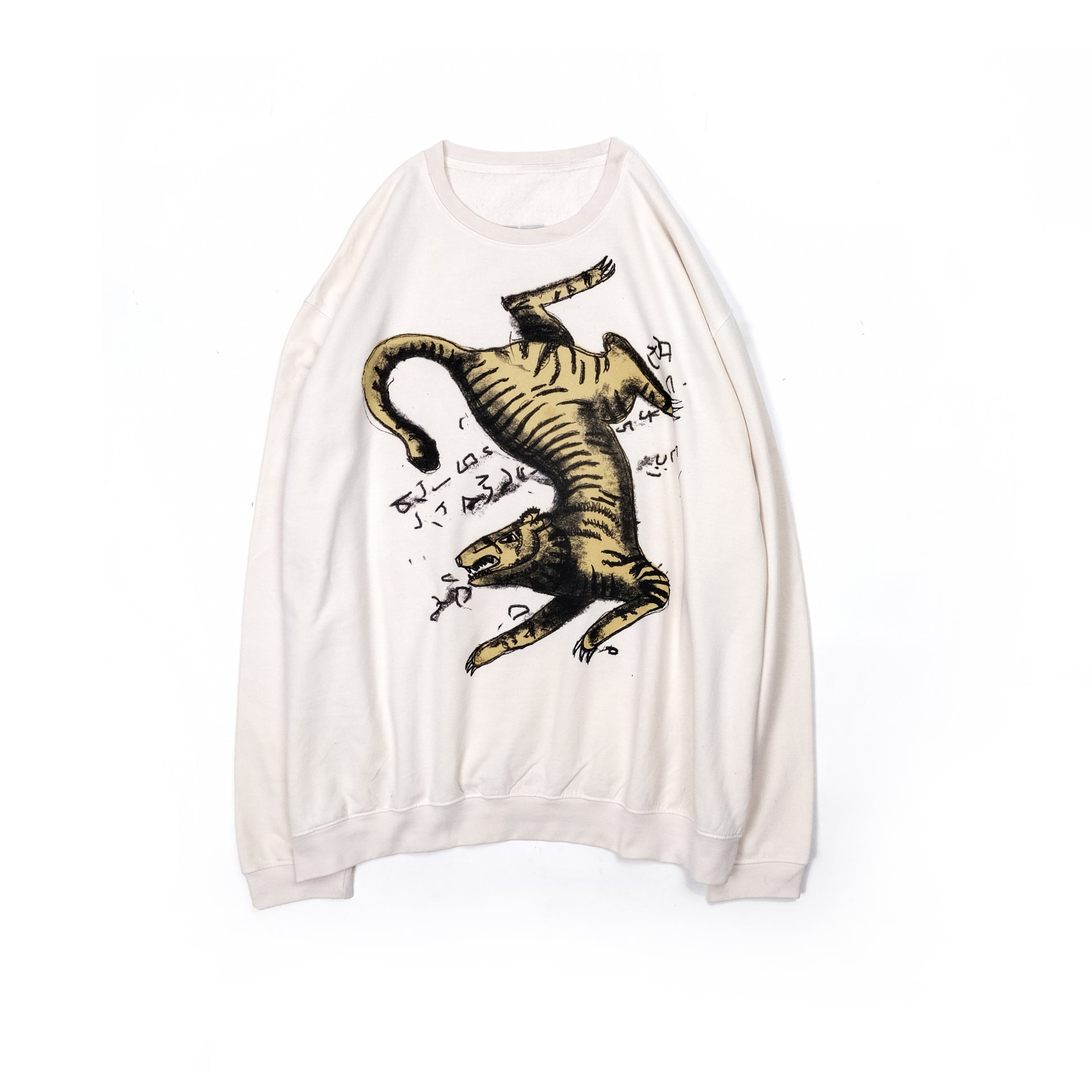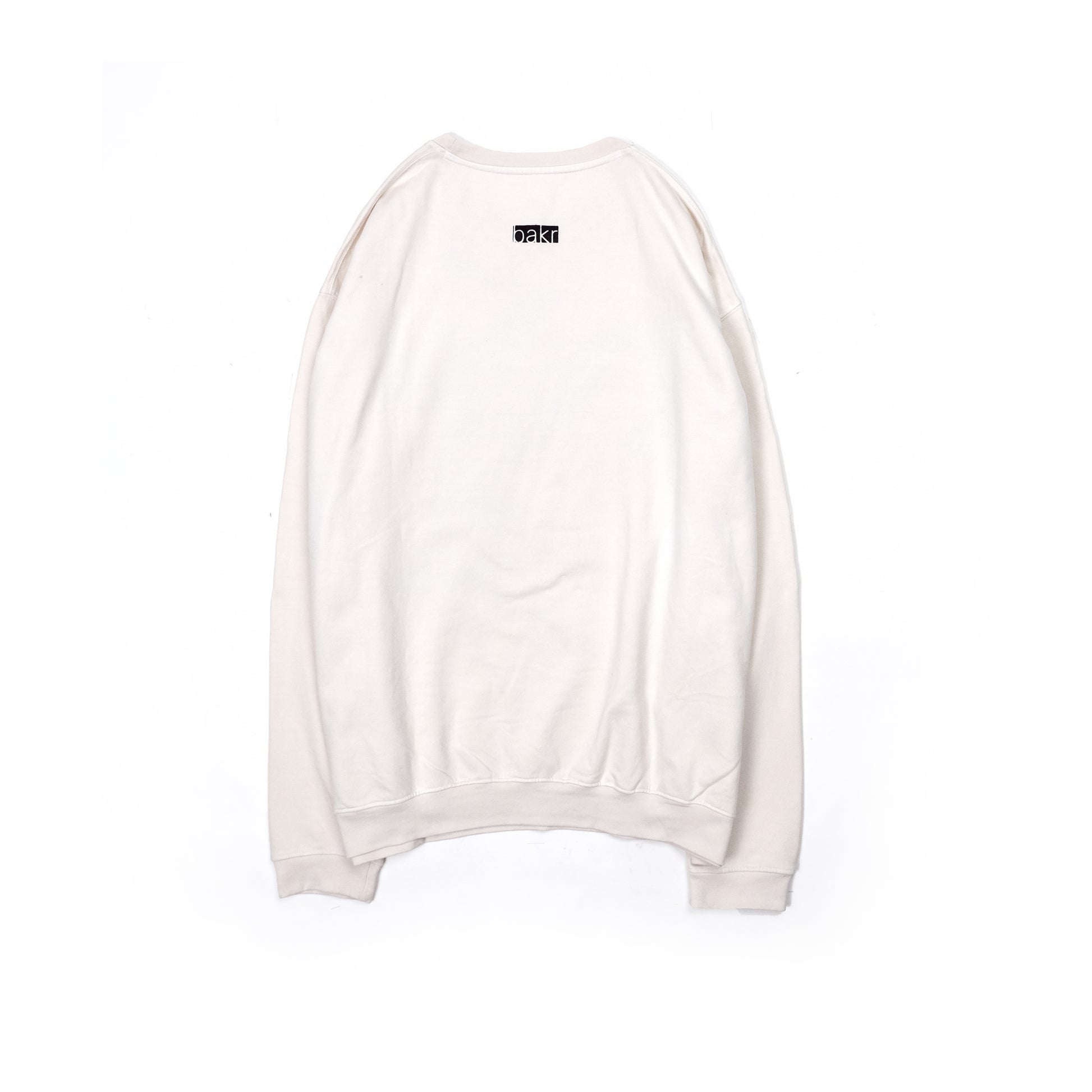 Bakr's oversized crewneck "imprint" in the shade "Ecru" is hand-printed in colours extracted through the fermentation of iron rust and molasses and hand painted in a 100% extract of myrobalan flower .