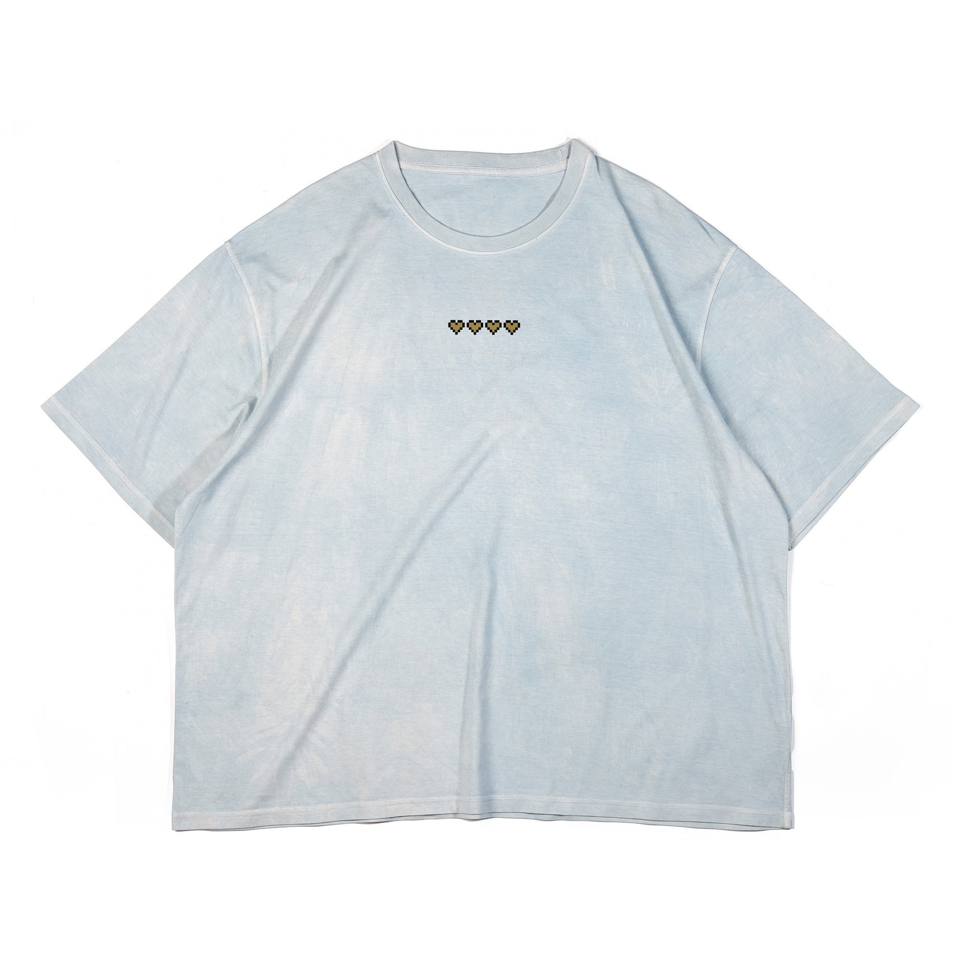 The tee begins with a base print in rust black—created through a natural fermentation of iron rust and molasses. After an initial wash, the garment is hand-dyed in our 100% organic honey indigo vat. Finally, using a traditional Kalamkari technique, it is hand-painted in Myrobalan Yellow, extracted from the flowers of the myrobalan tree.