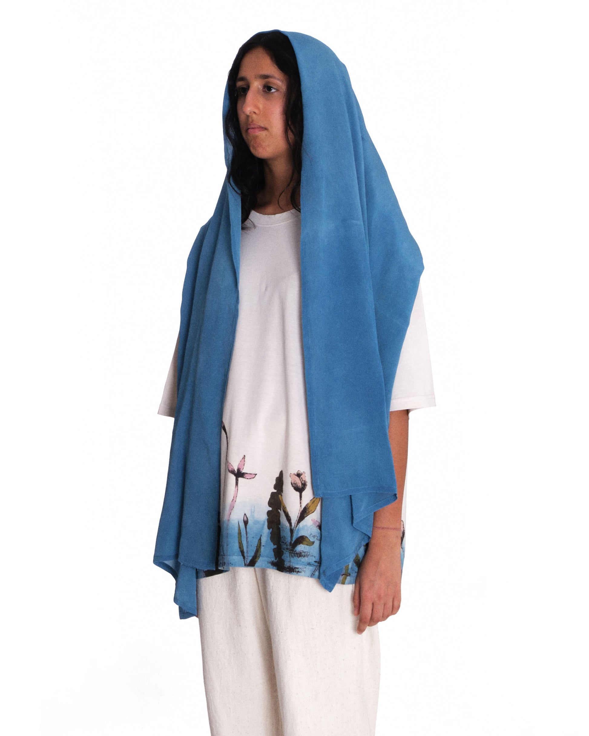 Presenting Bakr’s latest addition: a 21”x2Mtr” 100% Silk Crepe Stole in the elegant “Indigo Ice”. Crafted through a meticulous hand-dipping and oxidation process, it undergoes dual treatments in our exclusive organic indigo honey vat, resulting in a subtle yet luminous indigo colour.