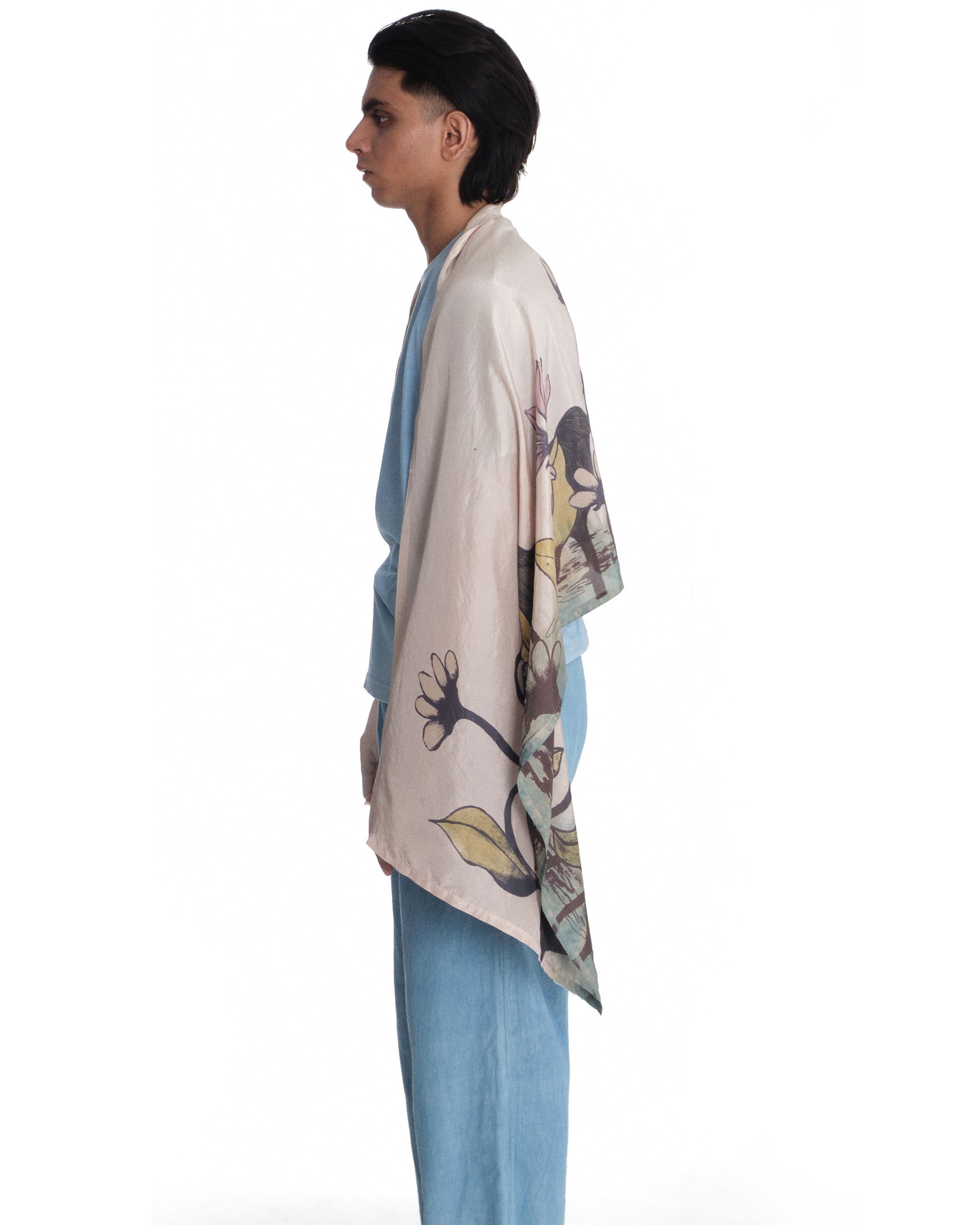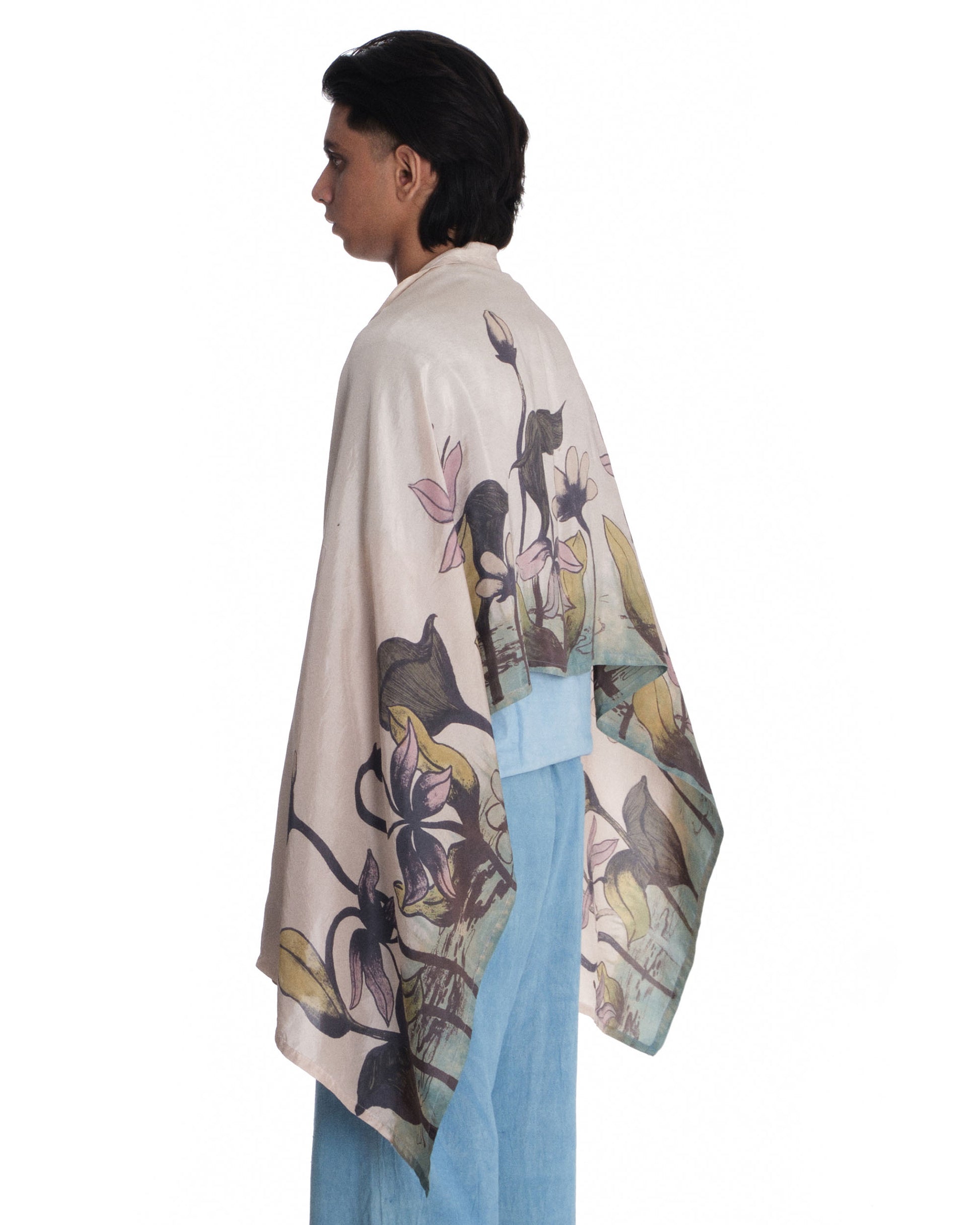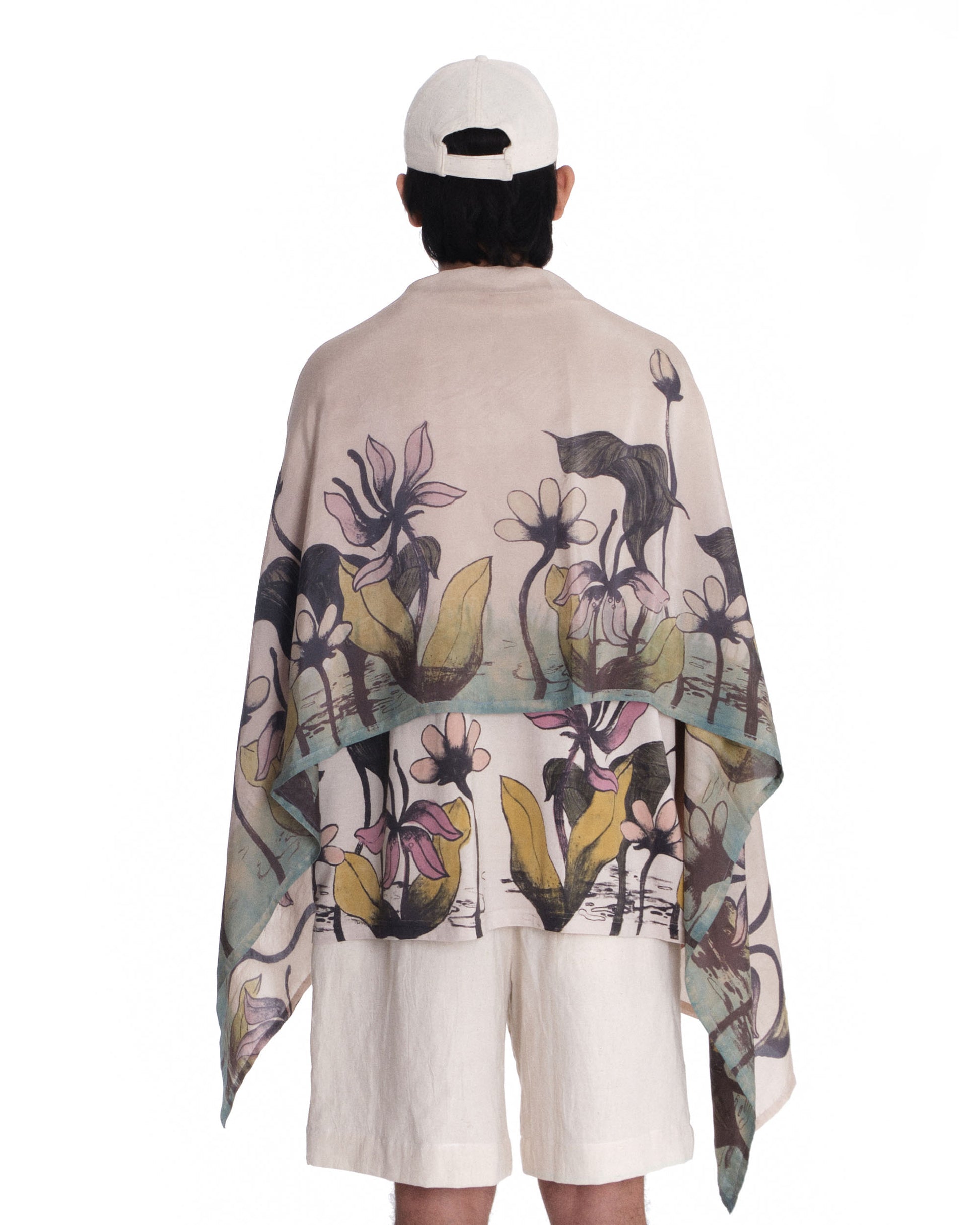 Presenting Bakr’s latest creation: a 21”x2Mtr 100% Silk Habotai Stole. This exquisite piece is hand-printed in a rich rust black tone, derived from the fermentation of iron rust and molasses. It is then meticulously hand-painted using 100% natural colours extracted through nature.
